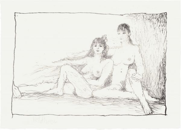 Na vele jaren maakte Aat Veldhoen weer twee litho's (ook 647, zonder titel), nu bij Aad Hekker. Door tussenkomst door zijn 60 jaar jongere muze, Neeltje. Na herseninfarct met de linker hand getekend.